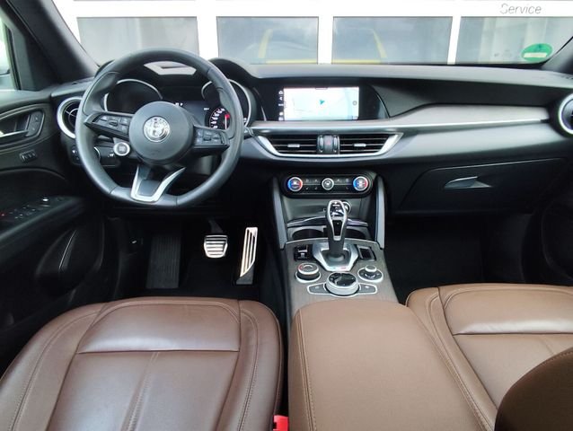 Adaptive Geschwindigkeitsregelanlage (Adaptive Cruise Control), Antriebsart: Allradantrieb, Auspuffanlage 2-flutig, , Ausstattungs-Paket: Connected, Aussenspiegel Wagenfarbe, Bremslicht mit Notfallfunktion (Einschaltautomatik Warnblinkanlage), Elektron. Bremskraftverteiler (EBD), Elektron. Traktionskontrolle, Fahrassistenz-System: Alfa Romeo D.N.A.-Fahrdynamik-System, Fahrassistenz-System: Autonomer Notbrems-Assistent (AEB), Fahrassistenz-System: Berganfahrhilfe (Hill-Holder), Fahrassistenz-System: Fernlichtassistent, Fahrassistenz-System: Frontkollisionswarnung (FCW), Fahrassistenz-System: Spurhalteassistent (Lane Departure Warning), Fahrassistenz-System: Totwinkel-Assistent, Fußmatten, Getriebe Automatik - (8-Stufen), Getränkehalter, Gurtstraffer, Heckklappenöffnung elektrisch, Heckleuchten dunkel getönt, Heckleuchten LED, Induktionsladeschale für Smartphone, Infotainment-System: UConnect 3D Nav (Farbbildschirm 8, 8), Innenausstattung: Interieurleisten Eichenholz, Innenspiegel mit Abblendautomatik, Keyless-Entry, Klimaautomatik 2-Zonen, Kopfstützen hinten, Lenkrad (Sport Leder, unten abgeflacht), Lenkrad heizbar, Lenksäule (Lenkrad) verstellbar (vertikal axial), Licht- und Regensensor, Modellpflege, Motor 2, 0 Ltr. - 206 kW Turbo KAT, Otto-Partikelfilter (OPF), Parkbremse elektrisch, Pedale Aluminium, Regen-Bremsassistent (RBA), Reifen-Reparaturkit, Reifendruck-Kontrollsystem