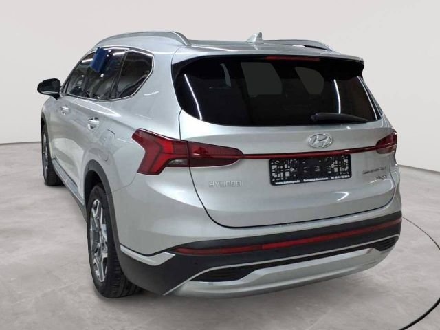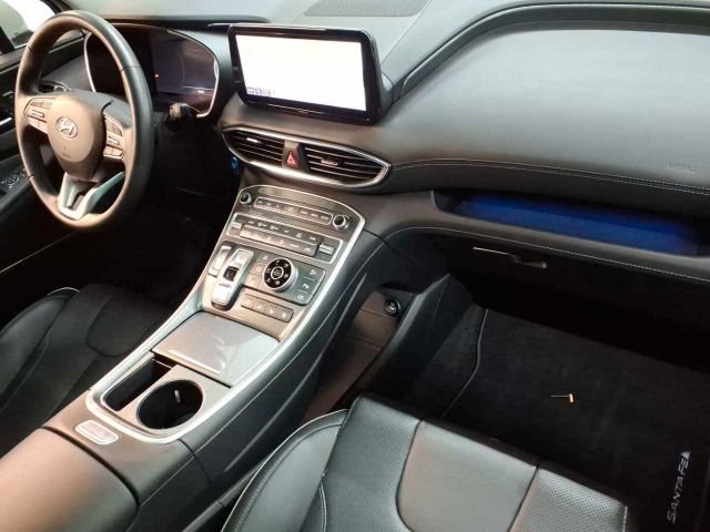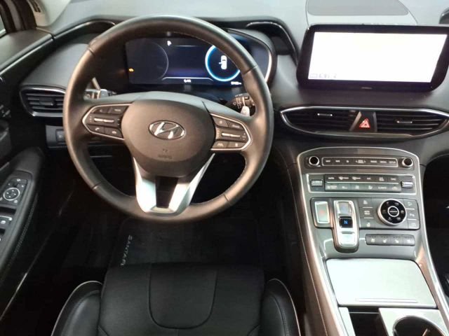 Ablagen, Adaptives Bremslicht (ESS), Airbag: Center Airbag zwischen Fahr./Bei, Airbag: Full-Size-Fahrer-/Beifahrer, Airbag: Seitenairbags vorn, Airbag: Vorhangairbags in den Längsholme, Alarmanlage mit Insassenalarm, Allradantrieb HTRAC, Ambiente-Beleuchtung, Antiblockiersystem (ABS) mit EBV, Armaturenbrett in Lederoptik, Aufmerksamkeitsassistent (DAW), Ausstiegsassistent (SEA), Autobahnassistent (HDA), Autonomer Notbremsassistent, Außenspiegel el. verstell- u. beheizbar, Außenspiegel elektrisch anklappbar, Bergabfahrassistent (Downhill Brake Cont, Berganfahrassistent (HAC), Cockpit 12,3-Zoll Farb Display, Dachreling, Dachspoiler, Dritte Bremsleuchte, Drive Modes, Einparkhilfe hinten, Einparkhilfe vorn, Elektrisch einstellbare Sitze vorn, Elektronisches Stabilitätsprogramm (ESC), Fensterheber elektrisch vorn und hinten, Fernlichtassistent, Frontscheibe mit Akustik-Film, Gepäcknetz, Gepäckraumabdeckung, Gepäckraumbeleuchtung, Geschwindigkeits-Regelanlage adapt. nav., Getriebe: 6-Stufen-Automatikgetriebe, Head-up Display, Heckscheibe, beheizbar, Heckscheiben-Wisch-/Waschanlage, Innenspiegel automatisch abblendend, Instrumententafel Beledert, Kindersicherung an den hinteren Türen, Klimaautomatik, Kopfstützen (5) vorn & hi. verstellbar, Kühlergrill in Satin Chrom, LED-Rückleuchten, LED-Tagfahrleuchten, LED-Voll-Projektionsscheinwerfer, Lackierung: Metallic-Lackierung Serie, Ladekabel Typ 2, Leichtmetallfelgen 7,5J X 19", Lenkrad: Lenkrad beheizbar, Lenkrad: Multifunktionslenkrad in Leder, Lenkrad: Schaltwippen am Lenkrad, Lenksäule neigungs- und höhenverstellbar, Leseleuchten vorne und hinten, Leuchtweitenregulierung, manuell, Lichtsensor, Mittelarmlehne hinten, Mittelarmlehne vorn mit Ablagefach, Mittelkonsole in Aluminiumoptik, Multikollisionsbremse (MCB), Niveauregelung Hinterachse, Ottopartikelfilter, Paket: Komfort, Paket: Navigations, Parkbremse elektrisch (EPB), Polster: Lederausstattung, Radiozubehör: Bluetooth-Freisprech., Radiozubehör: DAB+ Radio, Radiozubehör: USB Anschluss, Regensensor, Reifendruckkontrollsystem (TPMS), Räder: Notrad, Rückfahrkamera, Seitenaufprallschutz in den Türen, Servolenkung, Shift-by Wire, Sicherheitsgurte Santa Fe, Sitz: Fahrer höhenverstellbar, Sitz: Fahrer verst. el. Lendenwirbelstü., Sitze vorne beheizbar, Sitze: Beifahrersitz höhenverstellbar, Sitze: ISOFIX-Kindersitzbefestigung, Sitze: Rücksitzlehne 60:40 geteilt,klapp, Smart-Key-System mit Start-Stop-Knopf, Sonnenblende