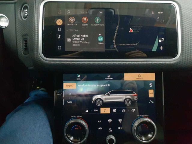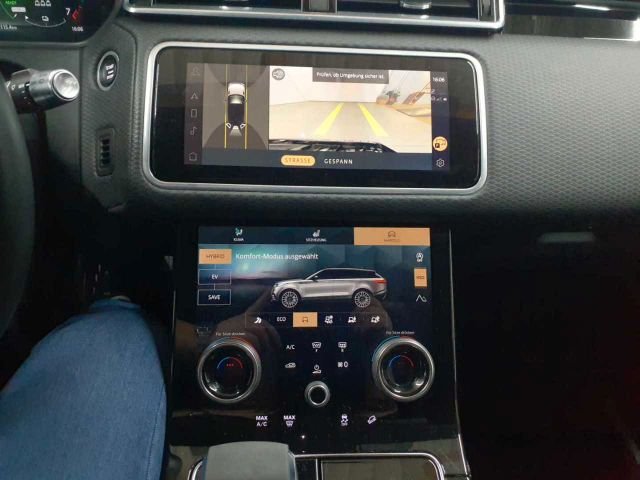 Airbag Fahrer- und Bei.seite"Full-Size", Airbag: Windowbags für 1.u. 2. Sitzreihe, Airbag:Seitenairbags Fahrer & Beifahrer, Alarmanlage, Allradantrieb (permanent), Ambiente Innenraumbeleuchtung, Anfahrhilfe (Low Traction Launch), Anhängerstabilitätssystem (TSA), Antiblockiersystem (ABS), Aufmerksamkeitsassistent, Autonomer Notfall-Bremsassistent, Außenspiegel el. verstell- u. beheizbar, Bergabfahrhilfe (HDC), Berganfahrhilfe, Bordcomputer, Bremskraft-Entriegelungssteuerung (GRC), Bremskraftverteilung elektronisch, Bremsleuchte dritte, Bremsscheiben vorn 380 mm, hinten 325 mm, Cornering Break Control (CBC), Dekorelemente in Cosmic Grey, Dynamische Stabilitätskontrolle (DSC), Einparkhilfe hinten und vorne, Einstiegsleisten vorne mit R-Rover, Elektronische Traktionskontrolle (ETC), Fahrwerk:Adapt. Dynamics(Adap. Fahrwerk), Federung: Stahlfederung, Fensterheber elektrisch, Frontscheibe aus schalldämmendem Verbund, Geschwindigkeitsreg. m. Geschw.-begrenz., Getriebe 8-Stufen-Automatik, Handschuhfach, verriegelbar, Heckklappe, manuell, Heckscheibe, beheizbar, mit Timer, Heckscheibenwischer, Heckspoiler, ISOFIX-Befestigungspunkte im Fond, Innenrückspiegel mit Abblendautomatik, Keyless Entry-Schlüsselloses Zugangssys., Kindersicherung, elektrisch, Klimaautomatik (2-Z.) mit Pollenfilter, Kopfstützen (5), LED-Scheinwerfer mit Tagfahrlicht, Lackierung: Uni, Ladekabel für Ladestationen Mode-3-Kabel, Ladekanten-Schutzleiste aus Aluminium, Laden: CCS-Anschluss für DC-Laden, Laden: Typ2-Anschluss für AC-Laden, Laderaumabdeckung, Lenkrad: Multifunktionslederlenkrad, Lenksäule manuell verstellbar, Leuchtweitenregulierung automatisch, Mittelarmlehne vorne, zweiteilig, versch, Offenes Differenzial mit Torque Vector., Offenes Differenzial mit Torque Vectorin, Ottopartikelfilter, Parkbremse, elektrisch (EPB), Pivi Pro mit Navigation, Polster: Luxtec und Premium-Velours, Radio: Digitales Radio (DAB+), Radio: Land Rover Soundsystem, Radiozubehör: 2x USB-Anschluss, Radiozubehör: Android Auto, Radiozubehör: Apple CarPlay, Radiozubehör: Sprachsteuerung, Radiozubehör: Unterer Touchscreen, Regensensor, Reifendruckkontrollsystem (TPMS), Remote, Räder: Allwetterreifen, Rückfahrkamera, Rücksitzbank im Verhältnis 40:20:40, Schaltwippen in mattiertem Chrom, Secure Tracker, Sensorgesteuertes Fahrlichtsystem, Servolenkung geschwindigkeitsabhängig, Sitze: 8-fach manuell verstellbar, Spurhalteassistent, Start-Stopp-System, Steckdosen: 12 Volt-Anschlüss, TFT-Instrumentendisplay 12,3", Telefon: Bluetooth-fähiges Tele