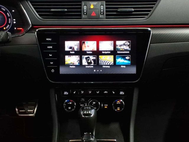 Ablagen, Airbag, Fahrer- und abschaltbarer Beif.A, Airbag, Fahrer-Knieairbag, Airbag, Kopfairbagsystem, Airbag, Seitenairbags vorne, Allradantrieb 4x4, Antiblockiersystem (ABS), Antriebsschlupfregelung (ASR), Außenspiegel ele. einstell- / beheizbar, Außenspiegel, elektrisch anklappbar, Beleuchtetes Handschuhfach, Berganfahrassistent, Bremsassistent, hydraulisch (HBA), Dachhimmel schwarz, Dachreling, schwarz-glänzend lackiert, Dekoreinlage Sportline, Dieselpartikelfilter und SCR-Katalysator, Drehzahlmesser, Dritte Bremsleuchte, Dynamischer Licht Assistent, Edelstahlpedalerie, Elektr. Querdifferenzialsperre (XDS+), Elektr.Parkbremse inkl.Berganfahrassist., Elektrische Heckklappenöffnung, Elektronische Stabilisierungskontrolle, Fahrlichtassistent und Regensensor, Fahrprofilauswahl, Fahrwerk: Adaptives Fahrwerk DCC, Fensterheber elektrisch vorn und hinten, Frontradarassistent inkl. City-Notbremsf, Fußraumbeleuchtung vorn und hinten, Geschwindigkeitsregelanlage inkl. Speedl, Getriebe: 7-Gang-Direktschaltgetriebe, Getönte Scheiben, Heckscheibe beheizbar, Heckscheiben-Wisch-/Waschanlage, Heckspoiler, ISOFIX-Vorberei.a.d.äußeren Rücks.Top-T., Klimaanlage Air Care Climatronic, Kofferraumabdeckung, einroll-/herausnehm, Kopfstützen vorne integriert, hi höhenv., Kühlergrilllamellen, -rahmen, .........., LED-Ambientebeleuchtung, Ladekantenschutz aus Metall, Lehnenfernentriegelung der Rücksitzlehne, Lenkrad: 3-Sp.-Lederlenkrad m. Multifunk, Lenkrad: Beheizbares Lenkrad 2 Speichen, Lenksäule höhen-und längeneinstellbar, Leseleuchten vorn und hinten, Matrix-LED-Scheinwerfer, Mittelarml. hi. m. Durchlademöglichkeit, Mittelarmlehne vorn mit Ablagefach, Motorschleppmomentregelung (MSR), Multifunktionsanz. farbig im Kombiinst., Multikollisionsbremse, Nebelscheinwerfer LED integr. Abbiegel., Polster: Alcantara-Ausstatt. Sport-Schw., Radiozubehör: DAB+, Radiozubehör: In Car Communication, Radiozubehör: SmartLink+, Radiozubehör: USB-Anschluss in Mittelkon, Radiozubehör: Wireless SmartLink für App, Reifendrucküberwachung, Reifenmobilitätsset, Rücksitzlehne 60:40 geteilt umklappbar, SKODA Care Connect, Scheibenwaschdüsen beheizt, Schlüsselloses Zugangs-/Start-Stopp-Syst, Servolenkung, elektromechanisch, Sicherheitsgurte Superb, Sitze: Beheizbare Vordersitze, Sitze: Höheneinstellbare Vordersitze, Sitze: Lendenwirbelstützen einstellbar, Sitze: Sportsitze vorn, Sitze: el einst. Vorder